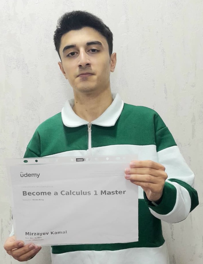 Вітаємо іноземного студента Мірзаєва Камала (1 курс, група 6.46.D3.047.24.1 факультету підготовки іноземних громадян ХНЕУ ім. С. Кузнеця), який успішно пройшов онлайн-курс “Become a Calculus 1 Master” на провідній світовій освітній онлайн-платформі для неформальної освіти Udemy за дисципліною “Вища математика” (викладач: к.т.н., доцент Місюра Є. Ю.).